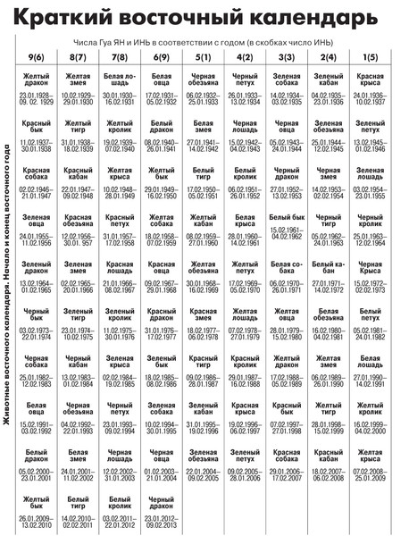 Китайский календарь (шэн сяо) буквально обозначает «походить на рождение». Года по восточному календарю не имеют фиксированной даты, а начинаются с первого молодого месяца после последнего (двенадцатого) полнолуния уходящего года.