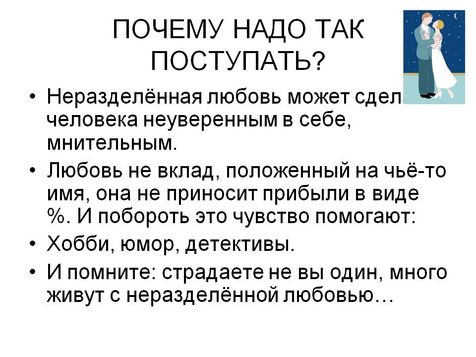 Если вам не повезло и вы в команде страдающих, то перестать страдать от безответной любви вы сможете только если